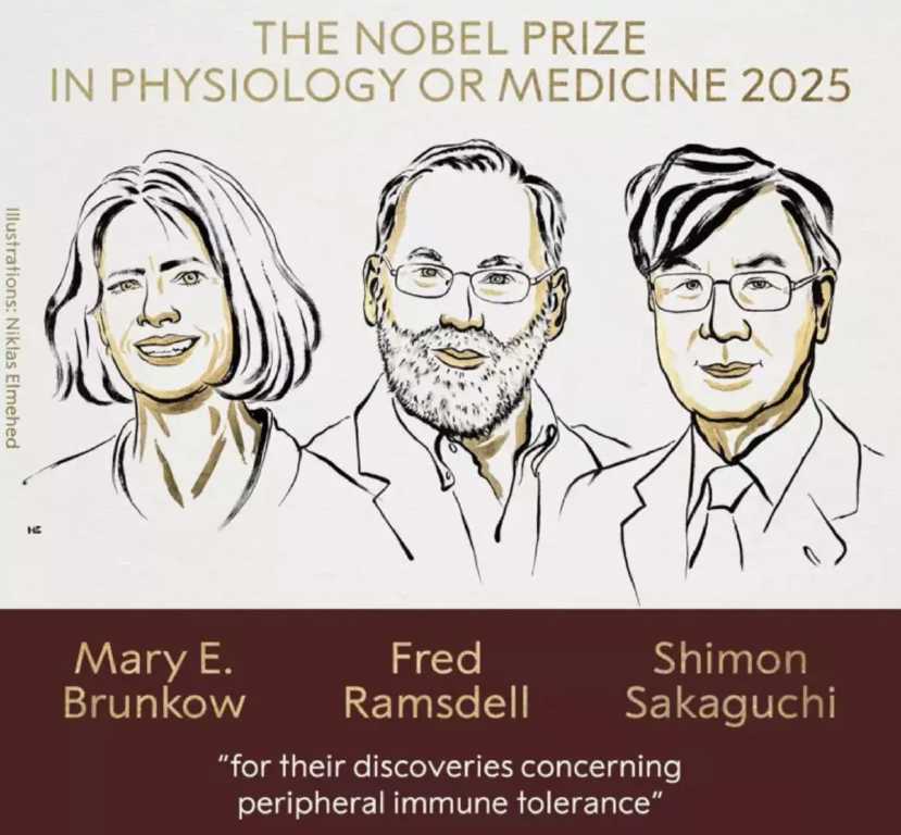 2025 Nobel Tıp Ödülü, bağışıklık sisteminin düzenleyici mekanizmalarını keşfeden Mary E. Brunkow, Fred Ramsdell ve Shimon Sakaguchi’ye verildi.