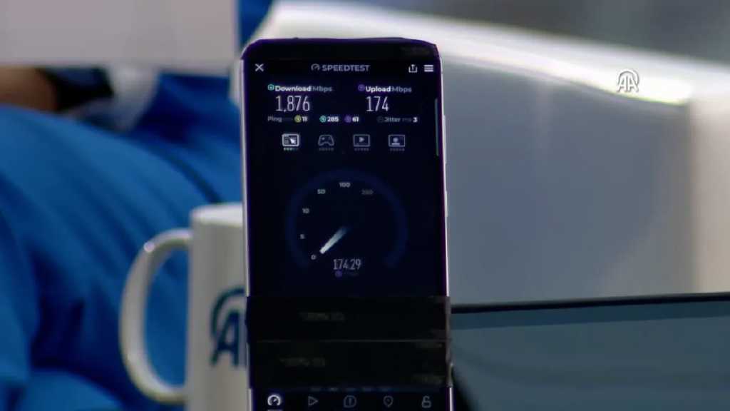 Bakan Uraloğlu, canlı yayında yaptığı 5G hız testinde ulaşılan rakamları kamuoyuyla paylaştı. Uraloğlu, “100 megabit ile 1 GB arasında değişen hızlara ulaştık. Şu an indirme hızımız 1.876’ya kadar çıktı, gönderme hızımız ise 175 civarında. Bu rakamlar bizim 5G’deki hızımızın artık onaylandığı, test edildiği rakamlardır. 4,5G’ye göre 10 kat bir hıza ulaştık.” ifadelerini kullandı.