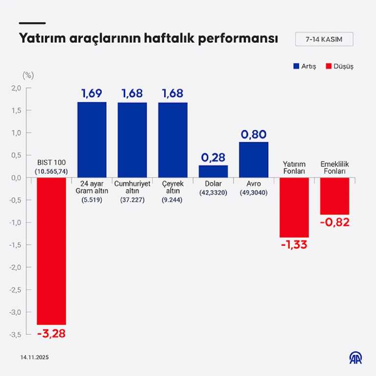 Yatırım fonları bu hafta ortalama yüzde 1,33, emeklilik fonları ise yüzde 0,82 değer kaybetti. Fon kategorileri arasında en çok kazandıran yüzde 6,11 ile kıymetli maden fonları oldu.