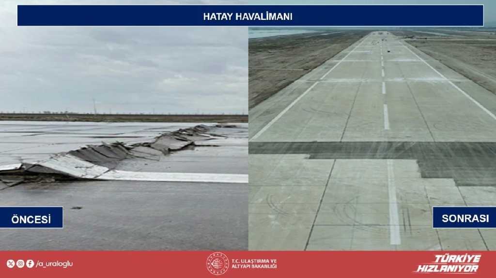 Havalimanlarında ise 6 Şubat–30 Nisan 2023 döneminde 30 bini aşkın uçak trafiği gerçekleştiğini, 3 milyondan fazla yolcuya hizmet verildiğini ve 22 bin 466 ton insani yardım malzemesinin bölgeye ulaştırıldığını aktardı. Hatay Havalimanı’nda yardımcı pistin hizmete alındığını, ana pist çalışmalarının ise devam ettiğini söyledi.