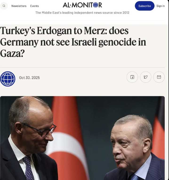 Erdoğan’ın, Almanya Başbakanı Friedrich Merz’e yönelik “Almanya bu zulmü görmüyor mu?” sözleri dünya basınında geniş yankı uyandırdı.