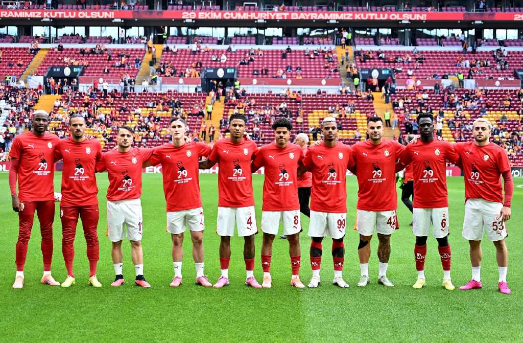Galatasaray, 29 Ekim Cumhuriyet Bayramı’na özel olarak Mustafa Kemal Atatürk’ün portresinin yer aldığı tişörtlerle ısınmaya çıktı. Tribünlerde dev Atatürk sözleri ve Türk bayrakları yer aldı.