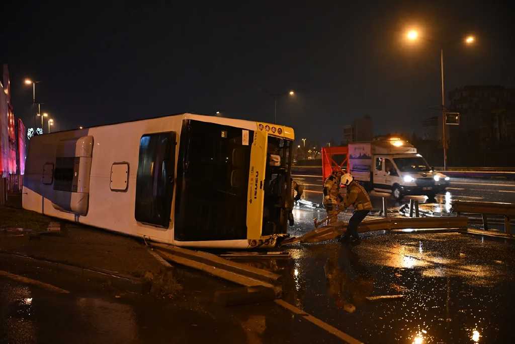 İSTANBUL'DA İETT'YE BAĞLI ÖZEL HALK OTOBÜSÜ DEVRİLDİ