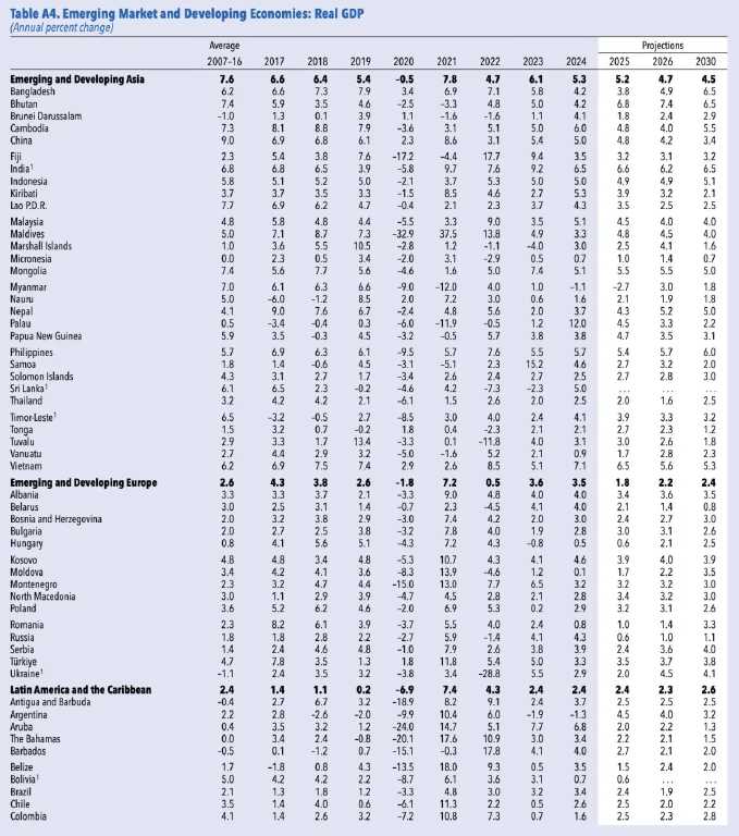 Raporda Çin ekonomisinin bu yıl yüzde 4,8, gelecek yıl ise yüzde 4,2 büyüyeceği öngörülürken, Hindistan için bu yılki tahmin yüzde 6,6 olarak açıklandı. Rusya ekonomisinin bu yıl yüzde 0,6 büyüyeceği, 2026’da ise yüzde 1 seviyesinde kalacağı bildirildi.