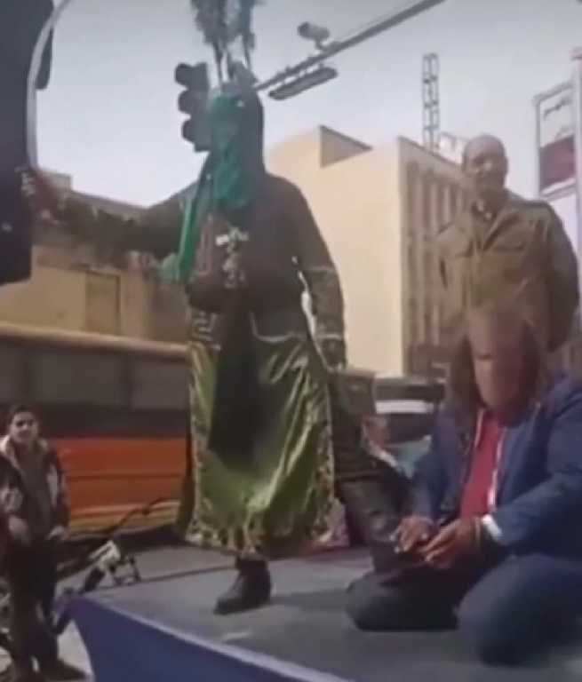 ABD ile İran arasındaki siyasi gerilim sürerken İran’da düzenlenen bir gösteride dikkat çeken bir sahne canlandırıldı. Kamusal alanda gerçekleştirilen etkinlikte, ABD Başkanı Donald Trump’ı temsil ettiği belirtilen bir figür üzerinden sembolik bir mizansen sahnelendi. Görgü tanıklarının aktardığına göre, elleri bağlı şekilde sahneye çıkarılan karakterin başının kılıçla kesildiği bir sahne canlandırıldı ve kalabalık bu gösteriyi sloganlar eşliğinde izledi.