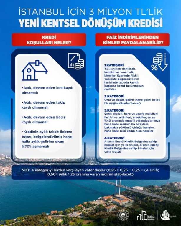 İstanbul’da riskli yapıların yenilenmesi için önemli bir adım atıldı. Depreme dayanıklı şehirler hedefi doğrultusunda hayata geçirilen yeni kentsel dönüşüm kredisi için başvurular resmen başladı.