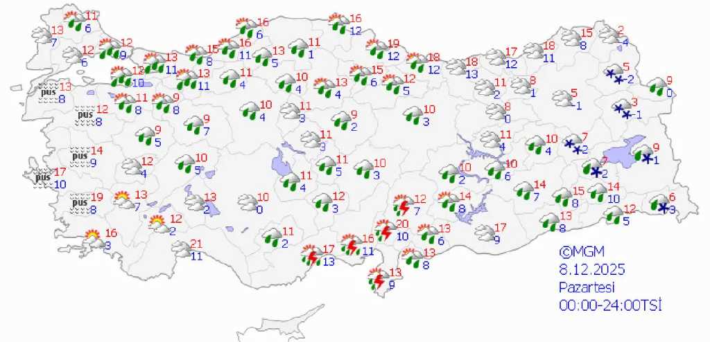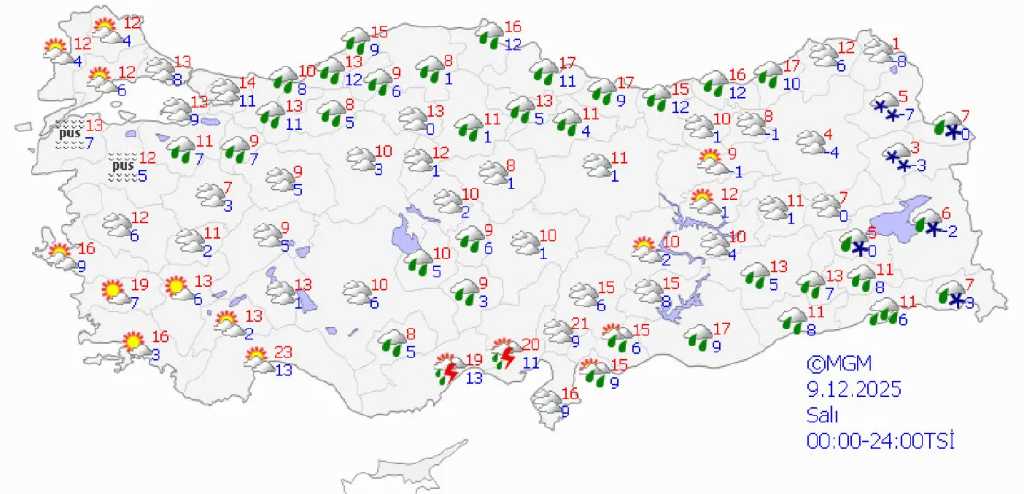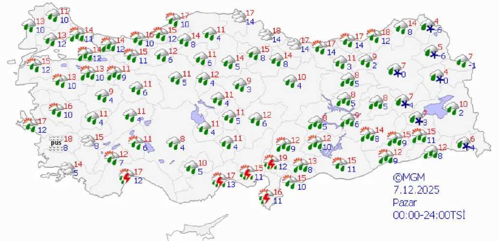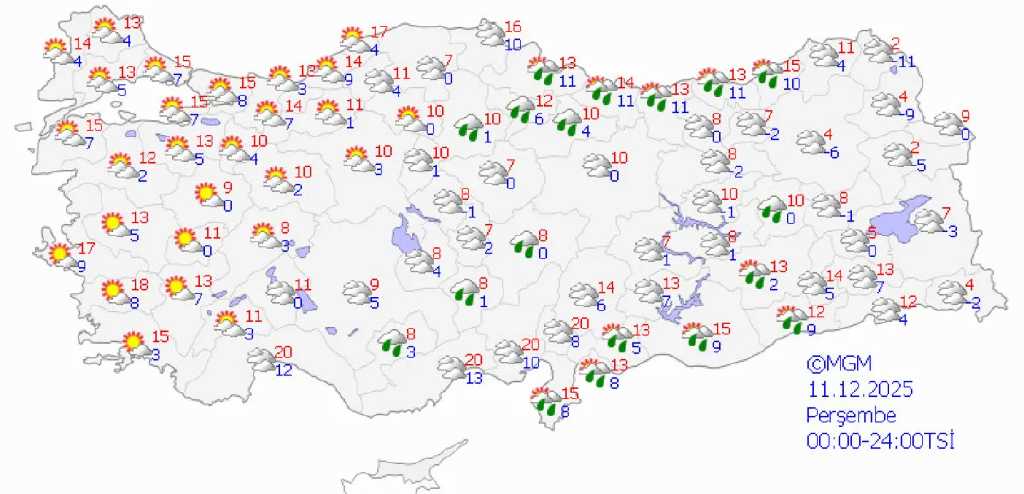Meteoroloji Genel Müdürlüğü (MGM), Türkiye genelinde önümüzdeki 5 güne ilişkin hava durumu tahminlerini yayımladı. Sıcaklıkların büyük ölçüde mevsim normalleri civarında seyredeceği dönemde özellikle Ege, Akdeniz ve İç Anadolu bölgelerinde yer yer etkili yağışlar bekleniyor. Hafta boyunca yağışların bölgesel olarak şiddetleneceği, bazı bölgelerde ise parçalı bulutlu ve açık havanın görüleceği bildirildi.