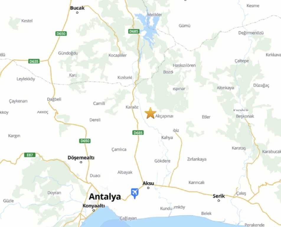 Antalya’da gün içinde meydana gelen sarsıntılar bölge halkında kısa süreli paniğe neden oldu. Afet ve Acil Durum Yönetimi Başkanlığı (AFAD), son depremin büyüklüğünün 4.9 olduğunu açıkladı. Antalya ve çevre illerde hissedilen depremde şu ana kadar herhangi bir olumsuzluk bildirilmedi.