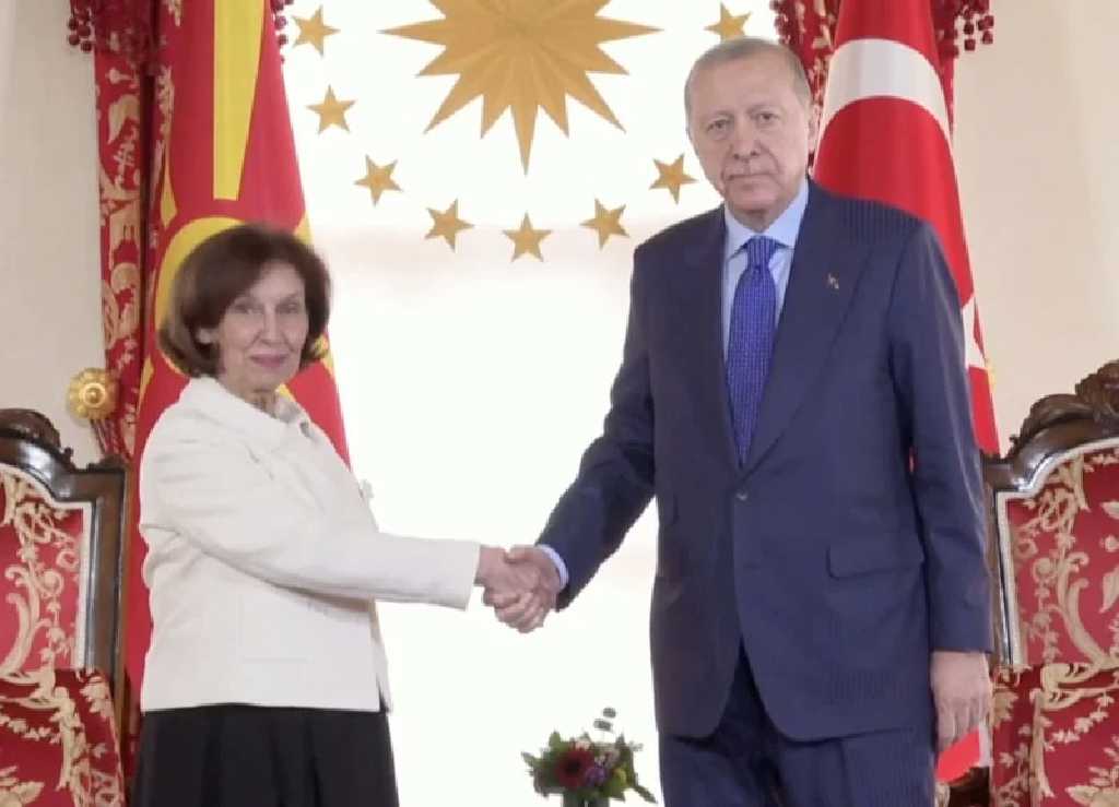 Günün son temasında Erdoğan, Gordana Siljanovska-Davkova ile bir araya geldi. Cumhurbaşkanı Erdoğan’ın konuğunu kapıda karşıladığı ve ardından görüşmeye geçildiği bildirildi.