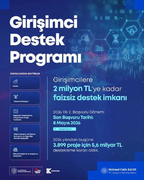 Bakan Kacır, 2026 yılı 2. dönem başvurularının başladığını açıkladı. KOSGEB’in İş Geliştirme Desteği kapsamında girişimcilere ciddi bir finansman imkânı sunuluyor.