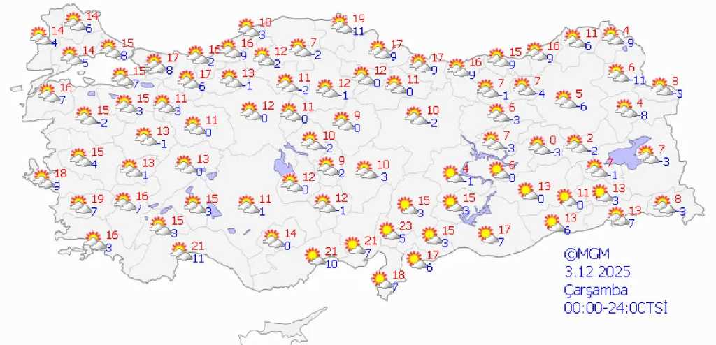 Meteoroloji Genel Müdürlüğü, yeni haftada yağışların etkisini kaybedeceğini bildirdi. Türkiye genelinde parçalı ve çok bulutlu bir hava beklenirken, sıcaklıklarda önemli bir değişiklik öngörülmüyor.