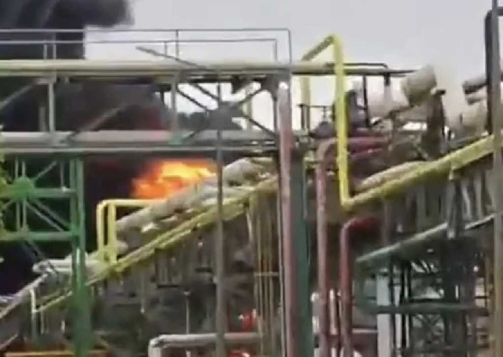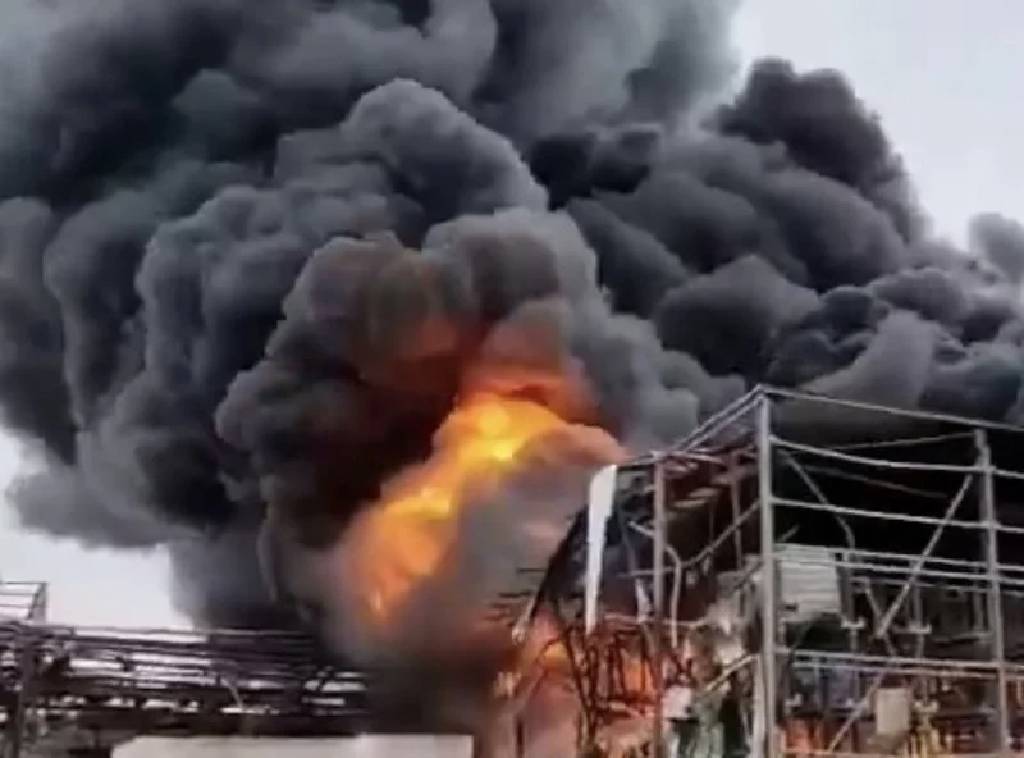 Saldırının ardından endüstriyel tesislerin bulunduğu alanda çıkan yangın kısa sürede büyüdü. Bölgeden gelen görüntülerde alevlerin tesisleri sardığı, çalışanların ise hızla tahliye edildiği görüldü.