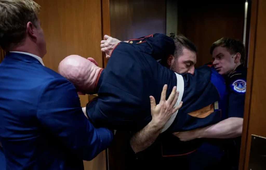 Protestonun ardından Kongre binasında görevli Capitol Police ekipleri McGinnis’i salondan çıkarmak için müdahale etti. Görüntülere göre ABD Senatörü Tim Sheehy de güvenlik görevlilerine yardım ederek protestocunun salondan çıkarılması sürecine katıldı.