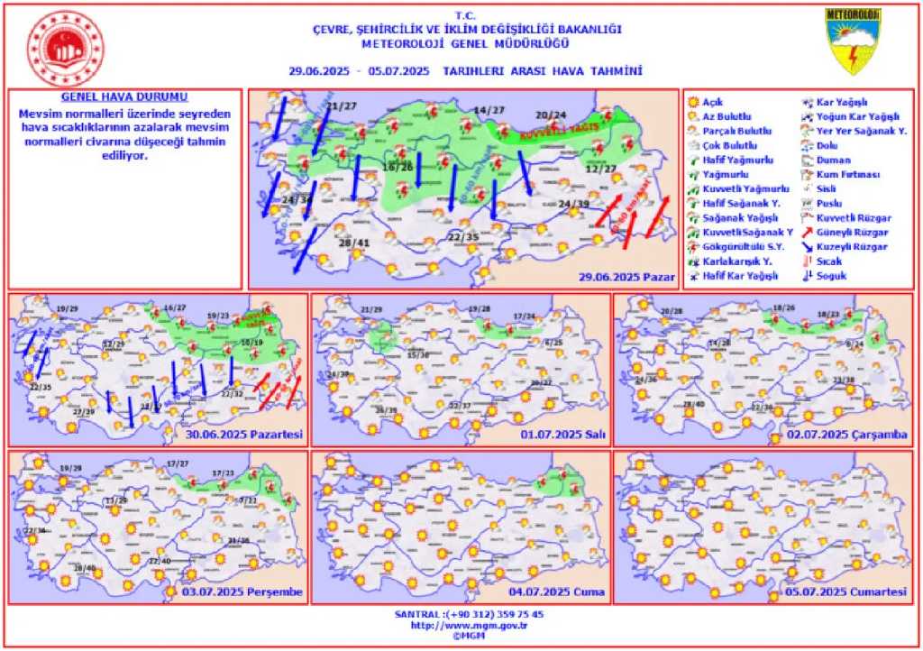 Hava sıcaklığının Karadeniz'de mevsim normallerinin 1-3 derece altında, iç kesimlerde normalleri civarında, diğer yerlerde normallerinin üzerinde seyretmesi bekleniyor.
