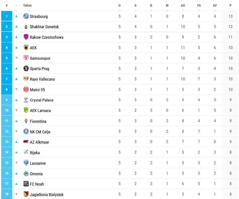 UEFA KONFERANS LİGİ PUAN DURUMU: SAMSUNSPOR LİDERLİĞİ KAYBETTİ