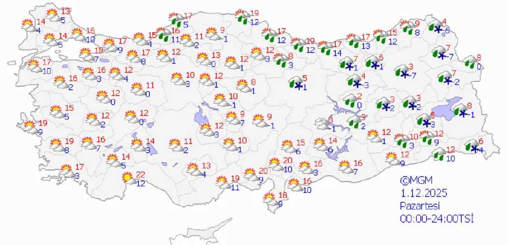 Türkiye genelinde Balkanlar üzerinden gelen soğuk hava dalgasının etkisiyle sıcaklıkların hissedilir derecede düşmesi bekleniyor. Meteoroloji Genel Müdürlüğü (MGM), hafta sonundan itibaren birçok bölgede kar yağışı, buzlanma ve don riskine karşı uyarıda bulundu. Özellikle iç ve yüksek kesimlerde sıcaklıkların mevsim normallerinin 6-12 derece altına ineceği tahmin ediliyor.