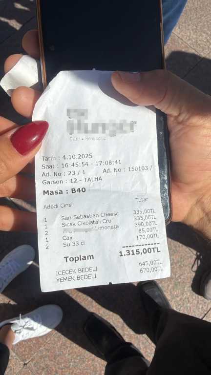 Bir vatandaşın Aksaray’da iki kişilik masa için bin 315 lira ödediğini ve iki küçük suya 170 lira alındığını belirtmesi üzerine, Ticaret Bakanlığı Ticaret İl Müdürlüğü Piyasa Gözetimi ve Denetimi Şube Müdürlüğü devreye girdi.