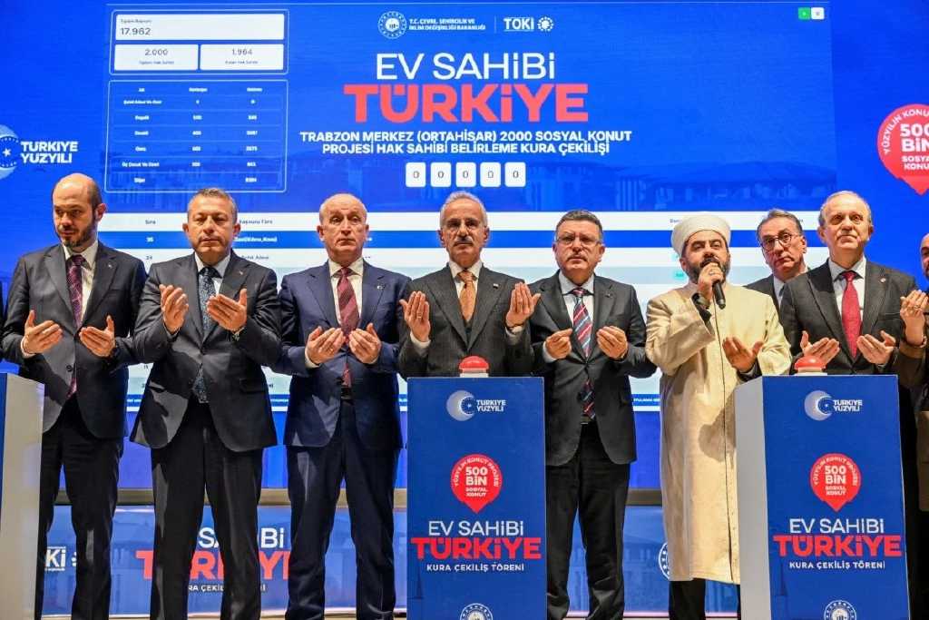 Bakan Uraloğlu, TOKİ’nin Trabzon’daki kura çekimi kapsamında şehrin konut ihtiyacını karşılayacak projeler hakkında da bilgilendirme yaptı. “500 bin sosyal konutla en az 2 milyon vatandaşımız güvenli ve modern konutlara kavuşacak” diyen Uraloğlu, Trabzon’a 3 bin 734 konut inşa edileceğini, bunların noter huzurunda hak sahiplerine teslim edileceğini söyledi.